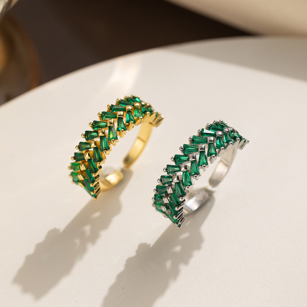 [Love Lucky]Doppelreihiger offener verstellbarer Ring mit grünem Zirkon