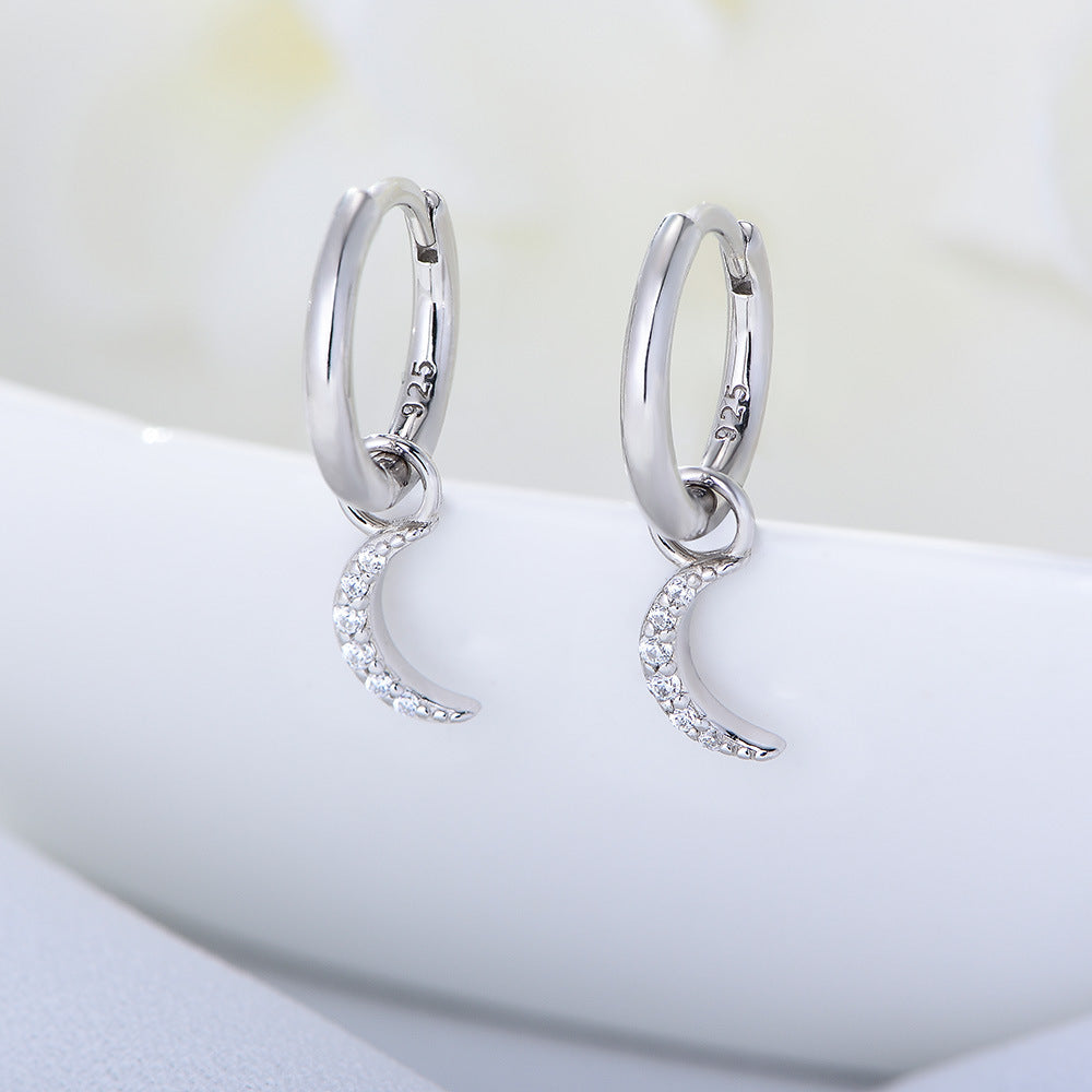 [Love Lucky]S925 Silber Zirkon Mond Ohrringe