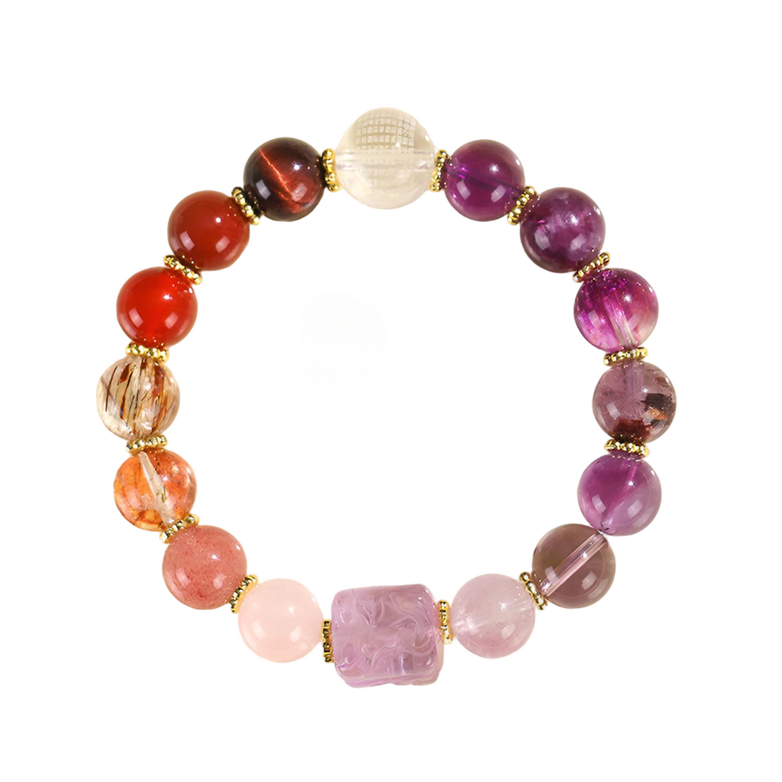 [Love Lucky]天然ストロベリークォーツブレスレット - 愛と自信の石 | 人間関係と自己啓発のための輝くエネルギー