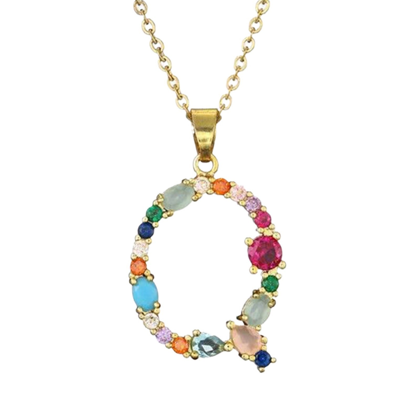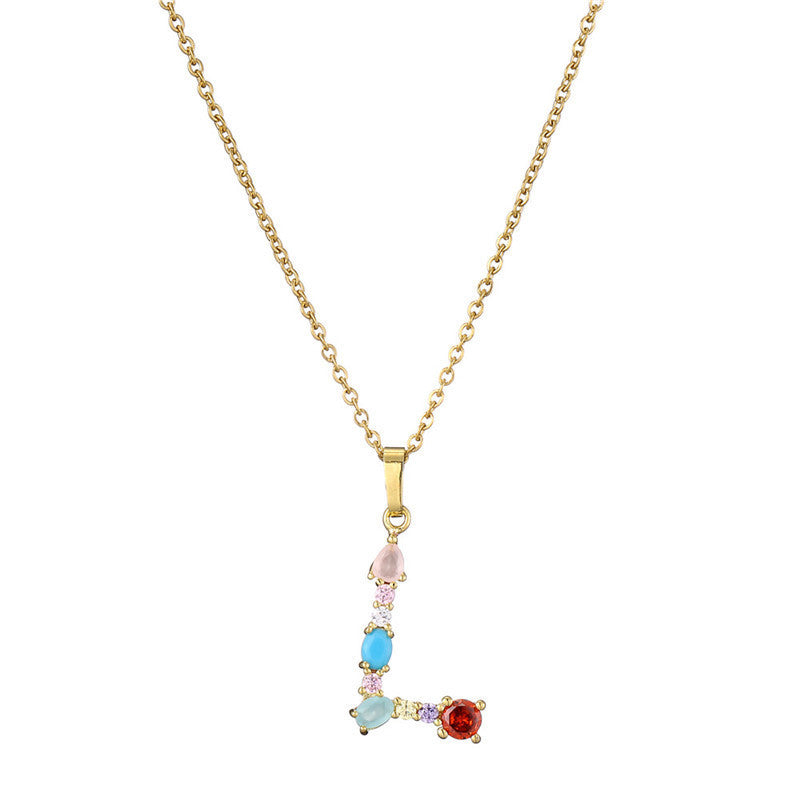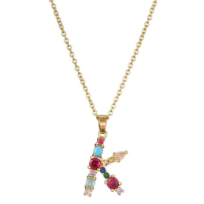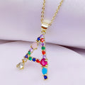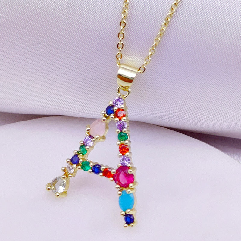 [Love Lucky]カラフルジルコン26文字ペンダントネックレス