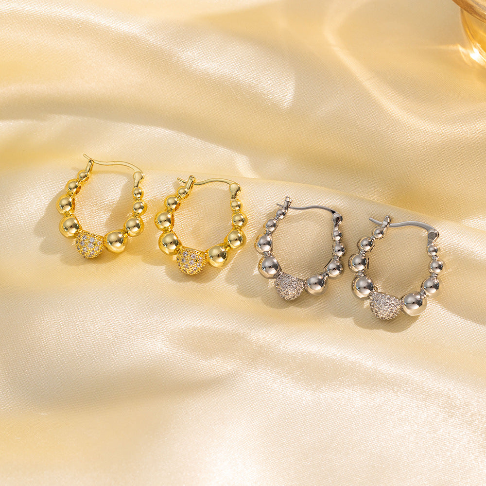 [Love Lucky]軽くて贅沢なラウンドビーズダイヤモンドイヤリング