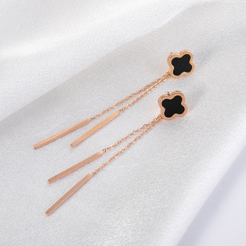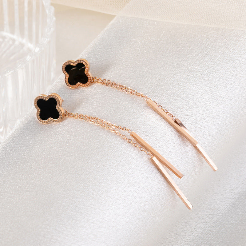 [Love Lucky]タッセル四つ葉のクローバースタッドピアス