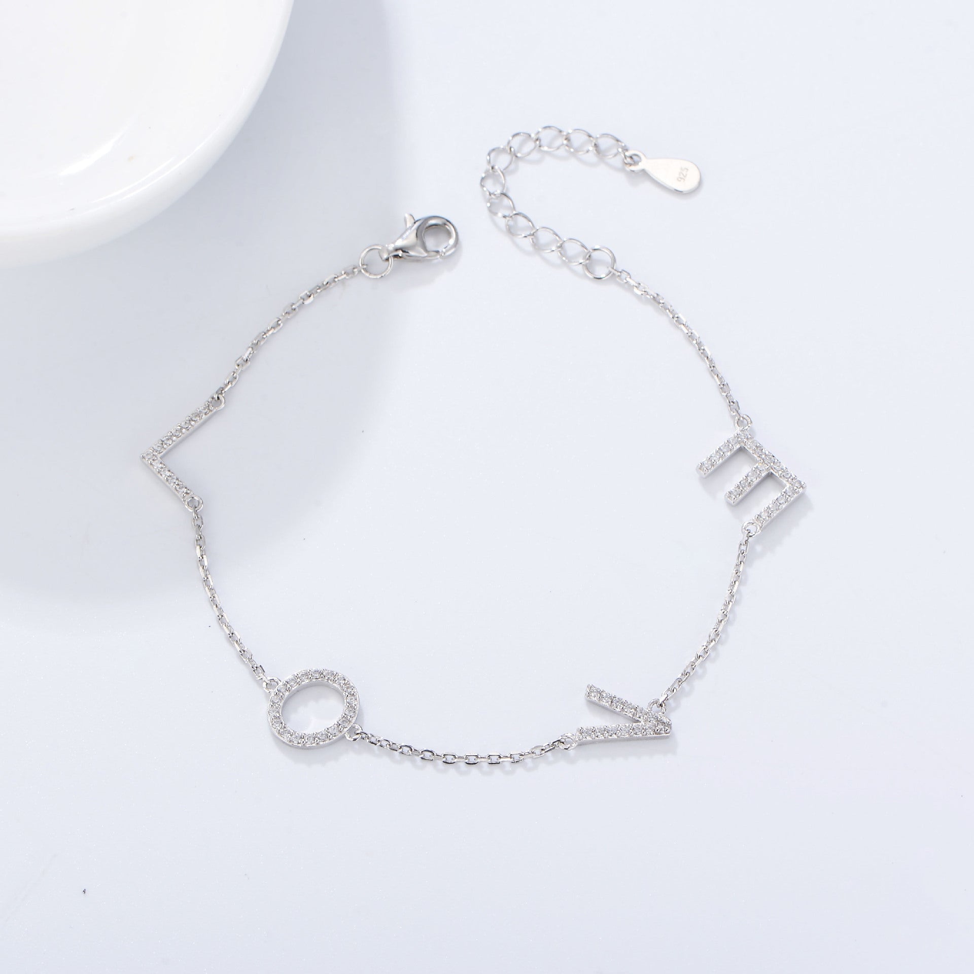[Love Lucky]S925シルバーLOVE英語文字ダイヤモンドスターリングシルバーブレスレット