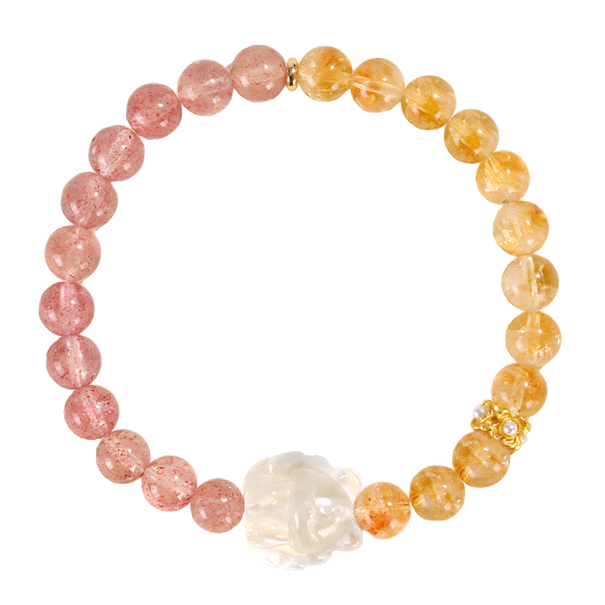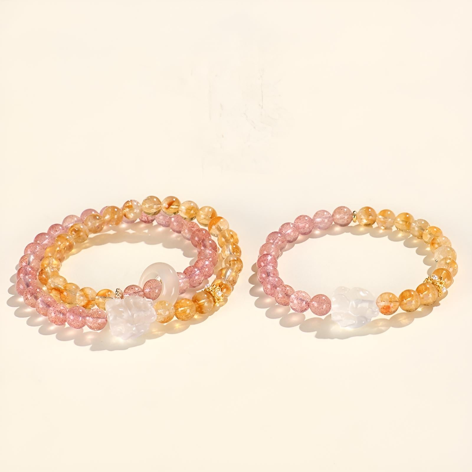 [恋愛運]ストロベリークォーツ イエロータワークリスタル 九尾狐ブレスレット