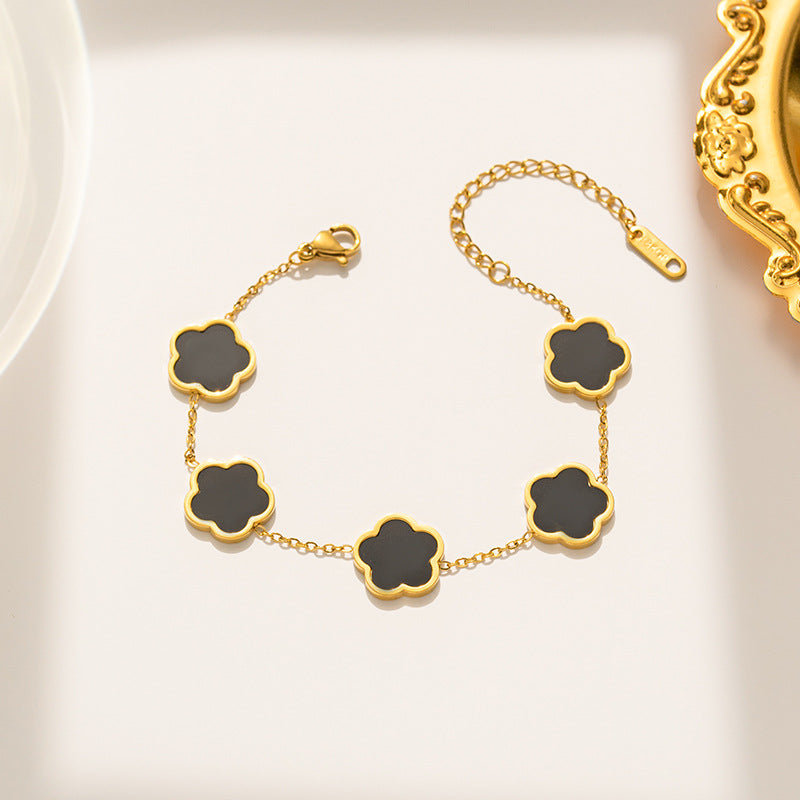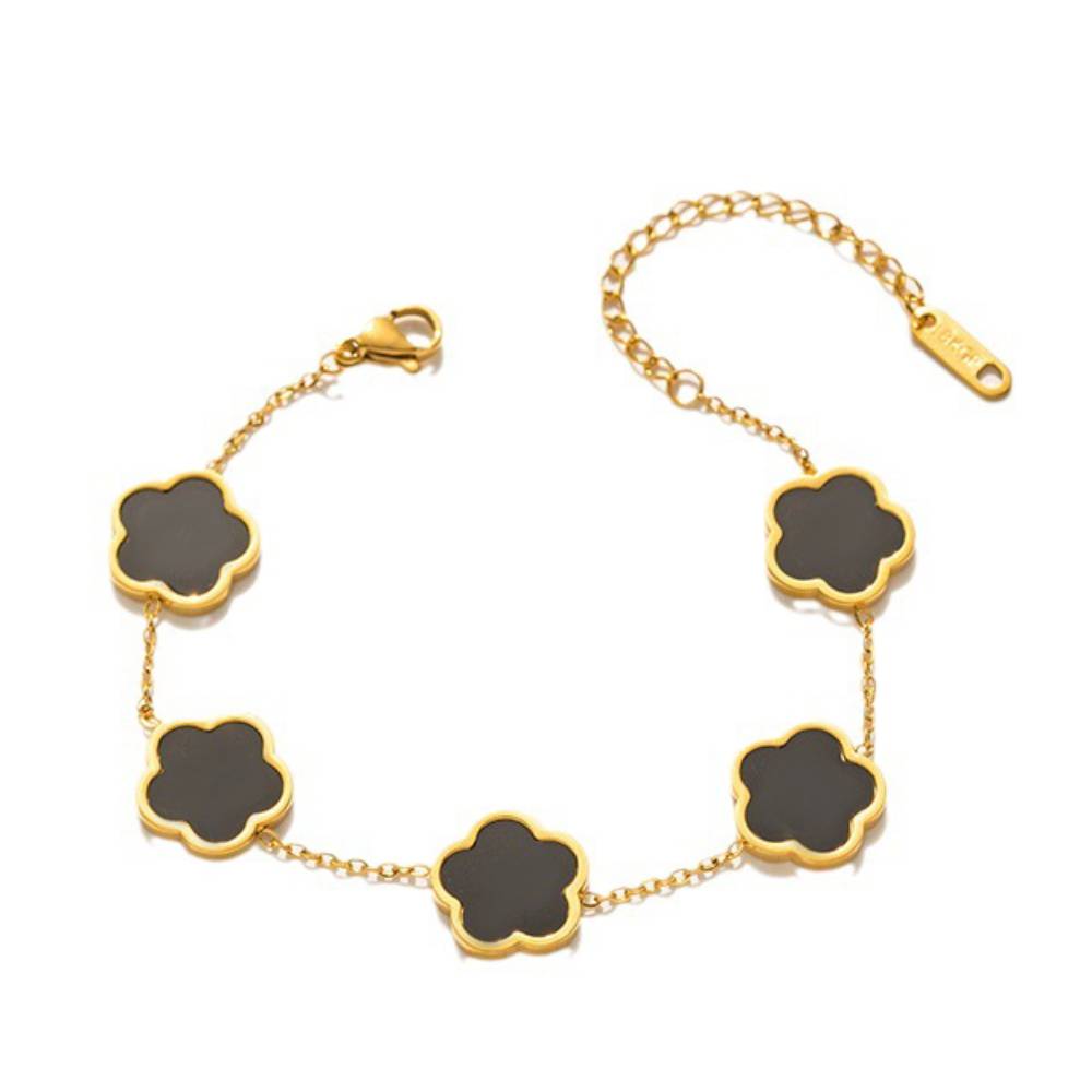 [ラブラッキー]ラッキーファイブフラワーブラックブレスレット