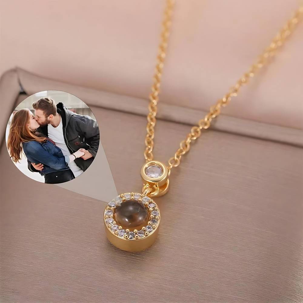 パーソナライズされたラウンドダイヤモンドフォトネックレス
