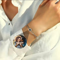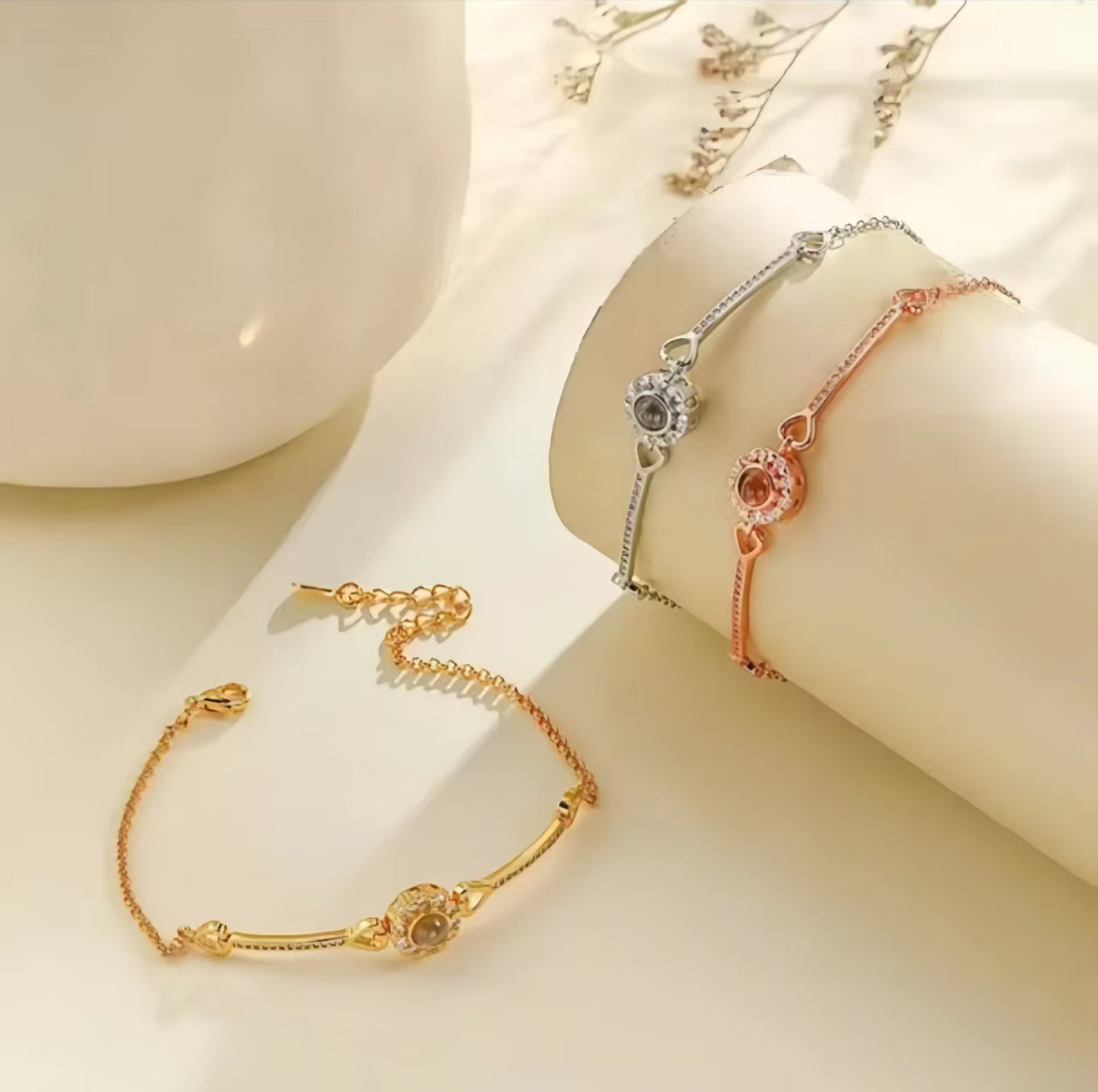 • あなたの写真が内側に – それぞれのブレスレットの内側には、あなたの写真が入っています。内側を見るか、スマートフォンのカメラを使って写真を表示できます。