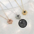 • カスタマイズ可能なヘキサグラムペンダント – このネックレスは、ヘキサグラムの魔法と宝石の奥深さを融合させています。細身のローズゴールドチェーンから優雅に垂らされたペンダントは、立体的なヘキサグラムを描き、洗練されながらも力強い印象を与えます。きらめくダイヤモンドがペンダントの周りを星の光のように揺らめき、光沢のあるブラックの宝石は宇宙の神秘的なささやきを体現し、温かく魅惑的な後光のように光を浴びてきらめきます。