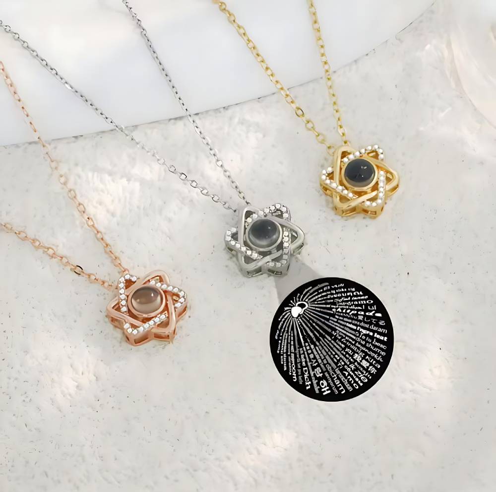 • 写真入りネックレス – それぞれのネックレスの内側にあなたの写真がプリントされています。中を覗いたり、スマートフォンで写真を撮ったりしてお楽しみいただけます。