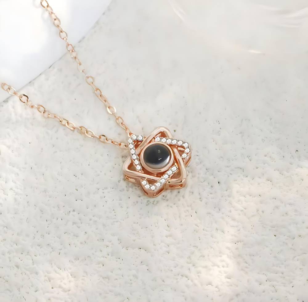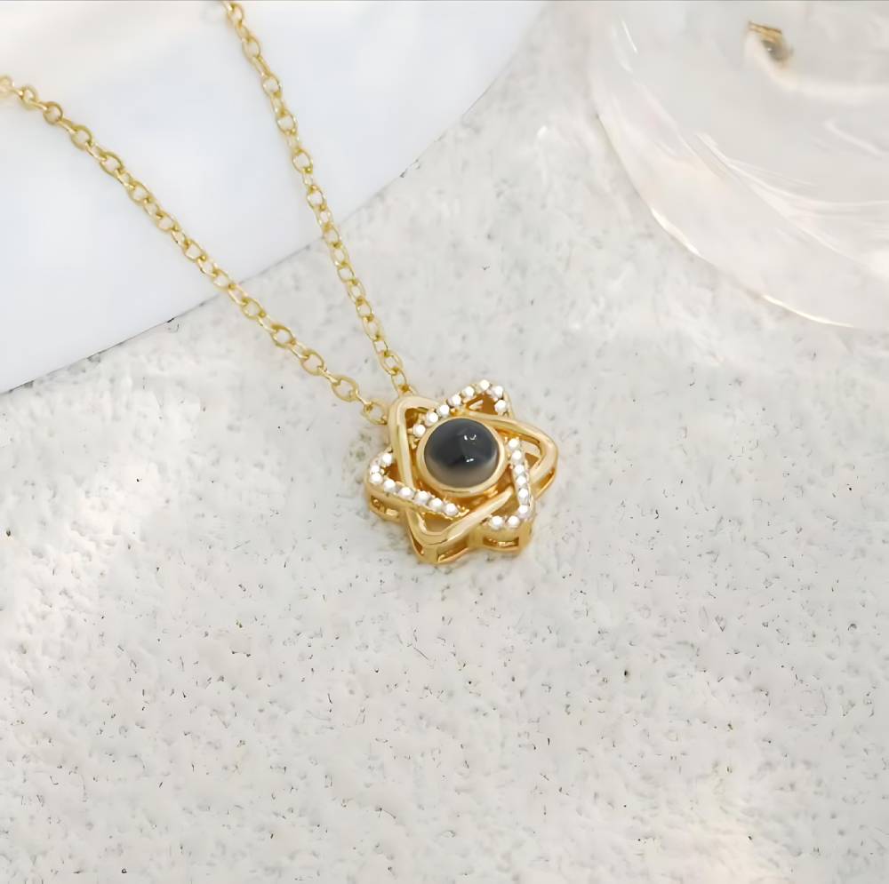 パーソナライズされた六芒星の写真ネックレス
