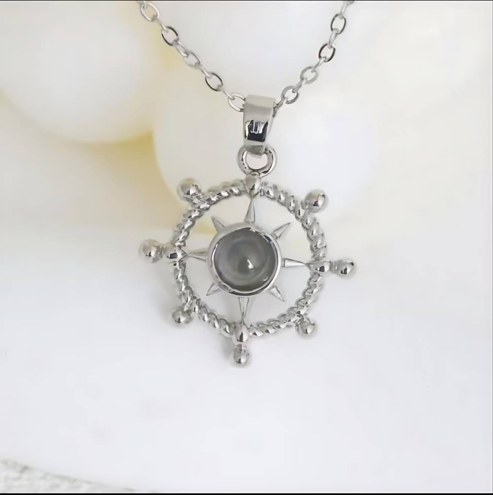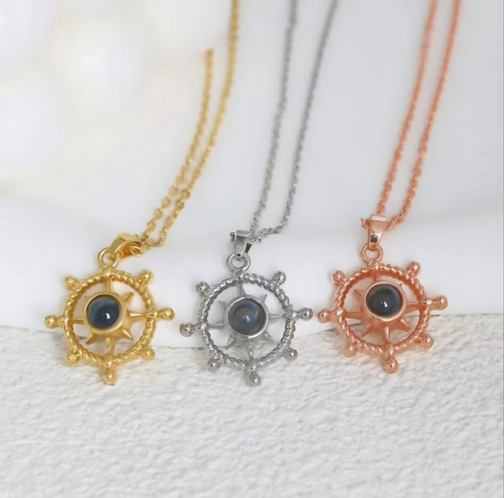 パーソナライズされた船の舵の写真ネックレス