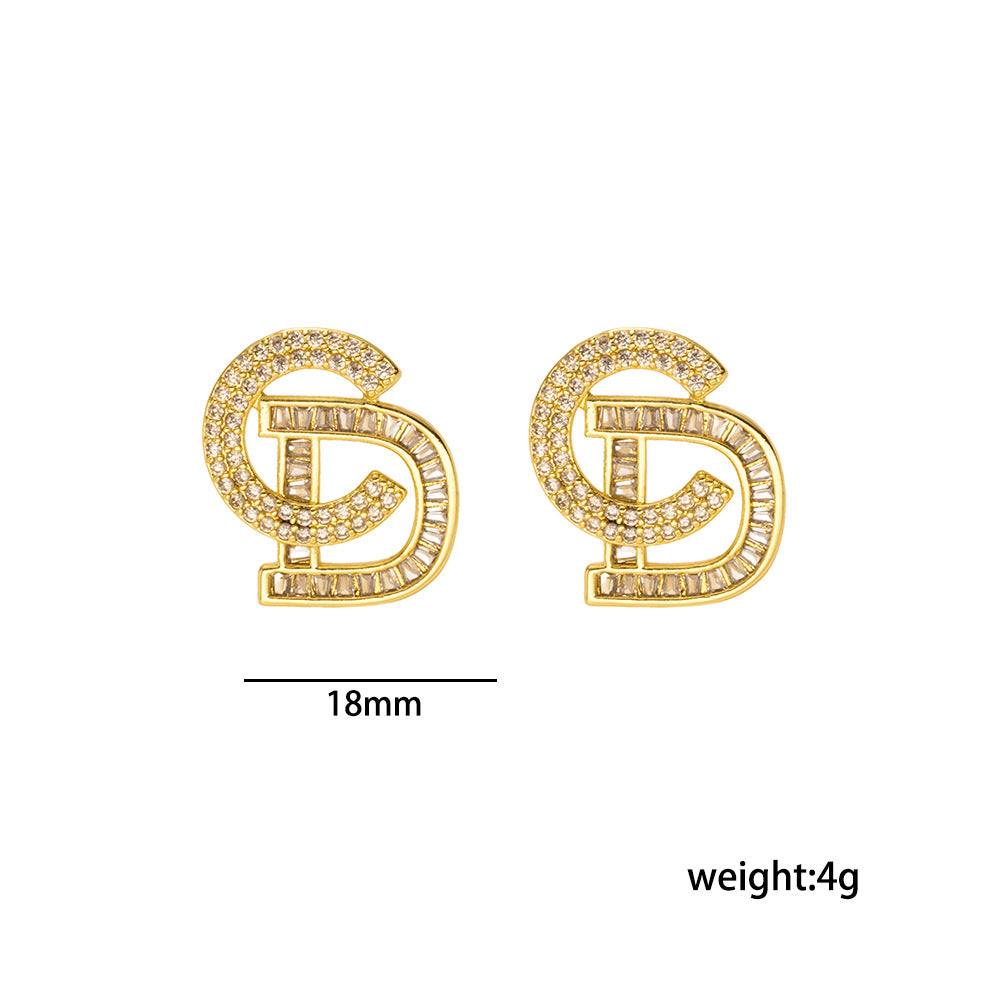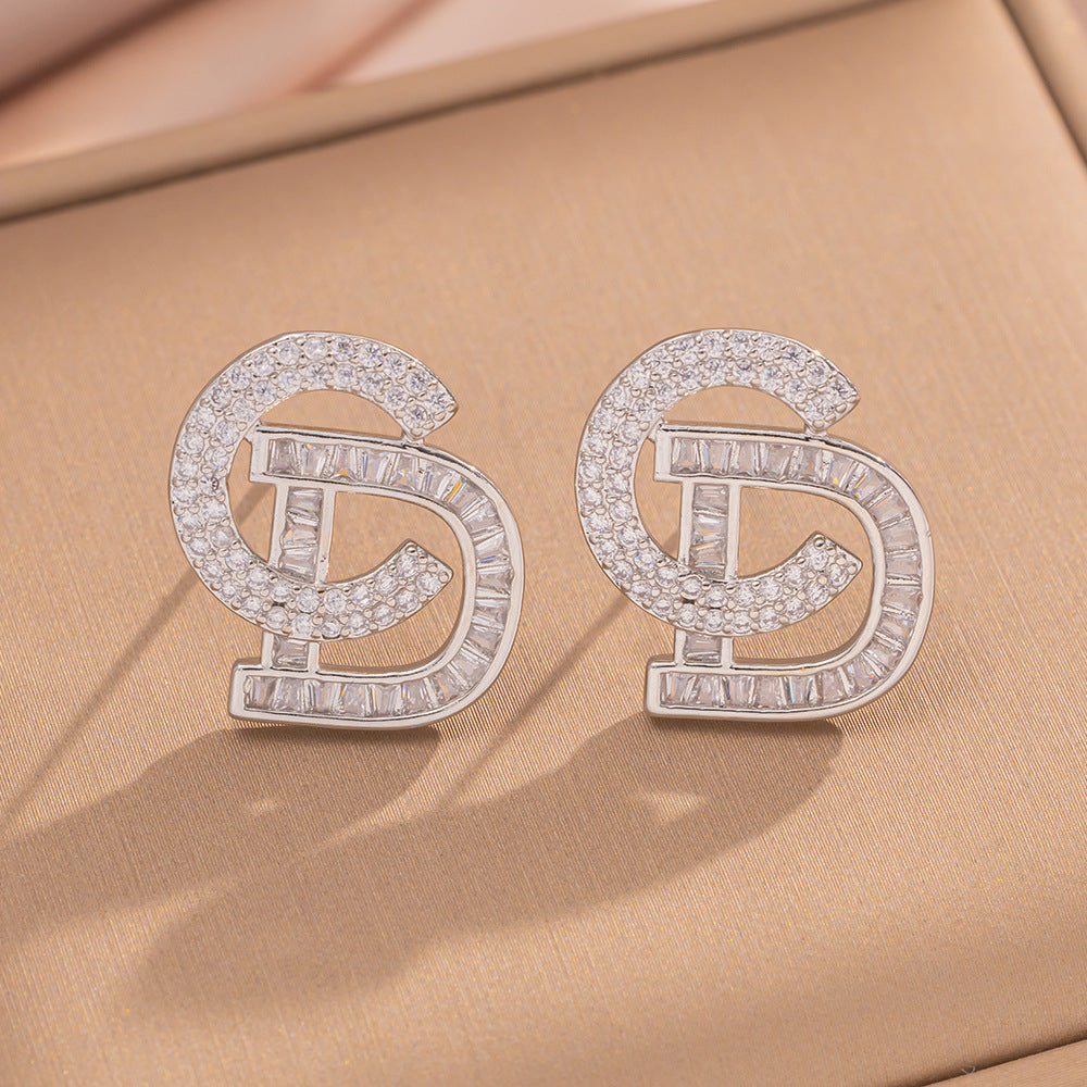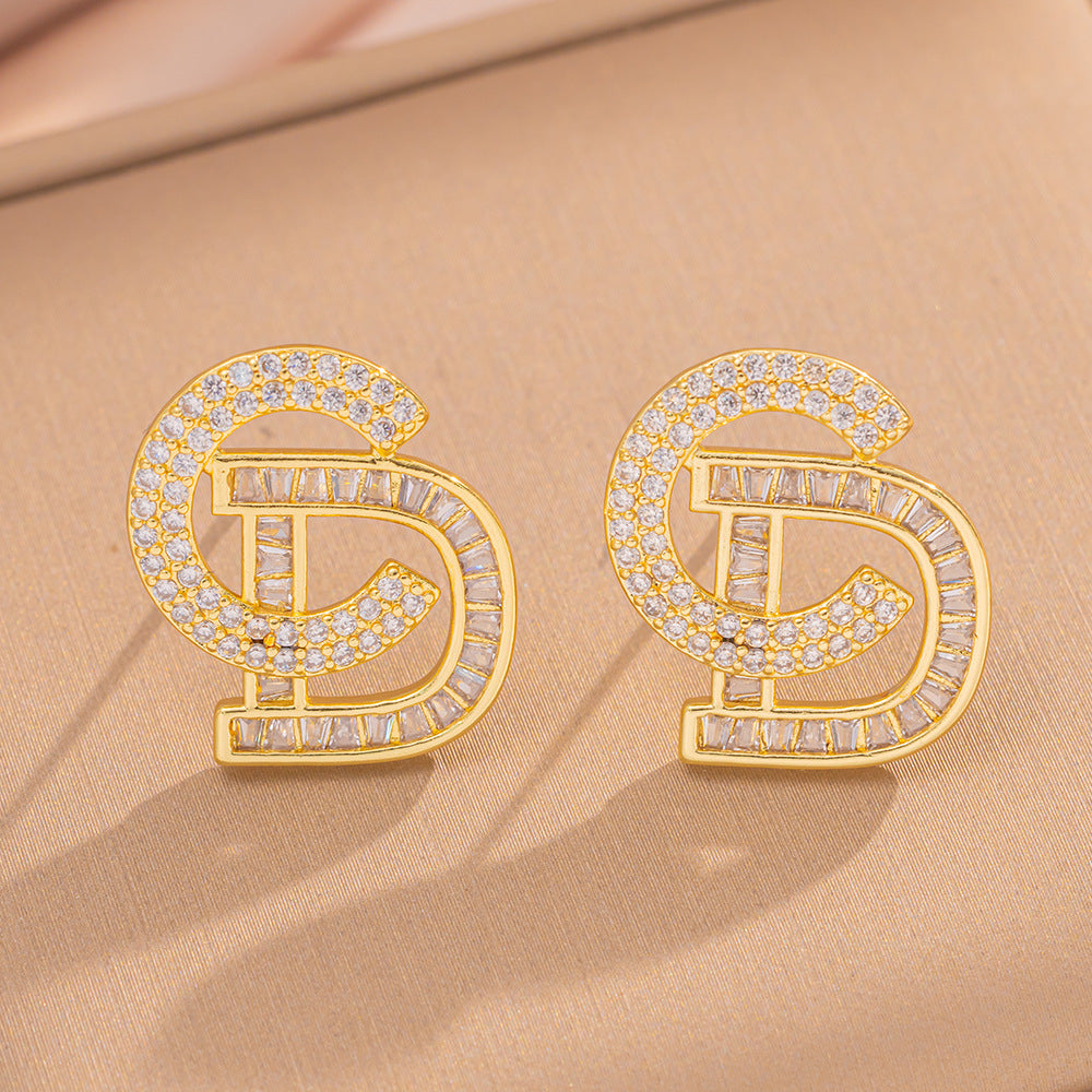 [Love Lucky]Diamond letter stud earrings