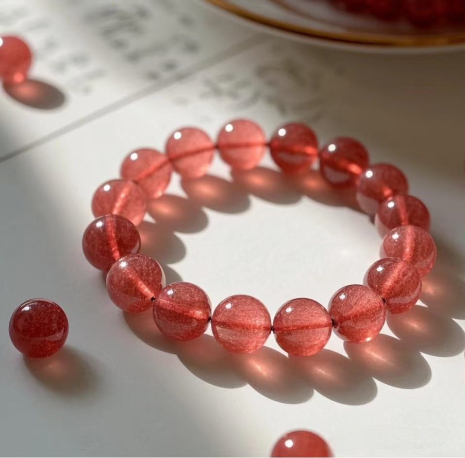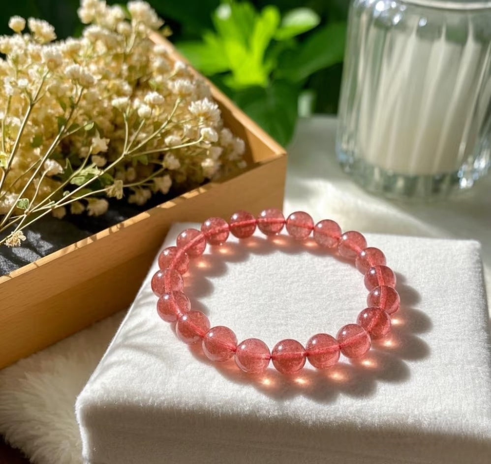 [Love Lucky]Natural Strawberry Quartz Bracelet - Stone of Love & Confidence | Sparkling Energy for Relationships & Self-Empowerment