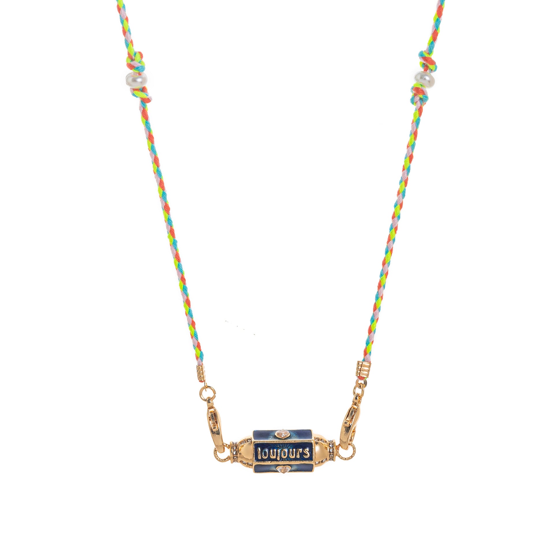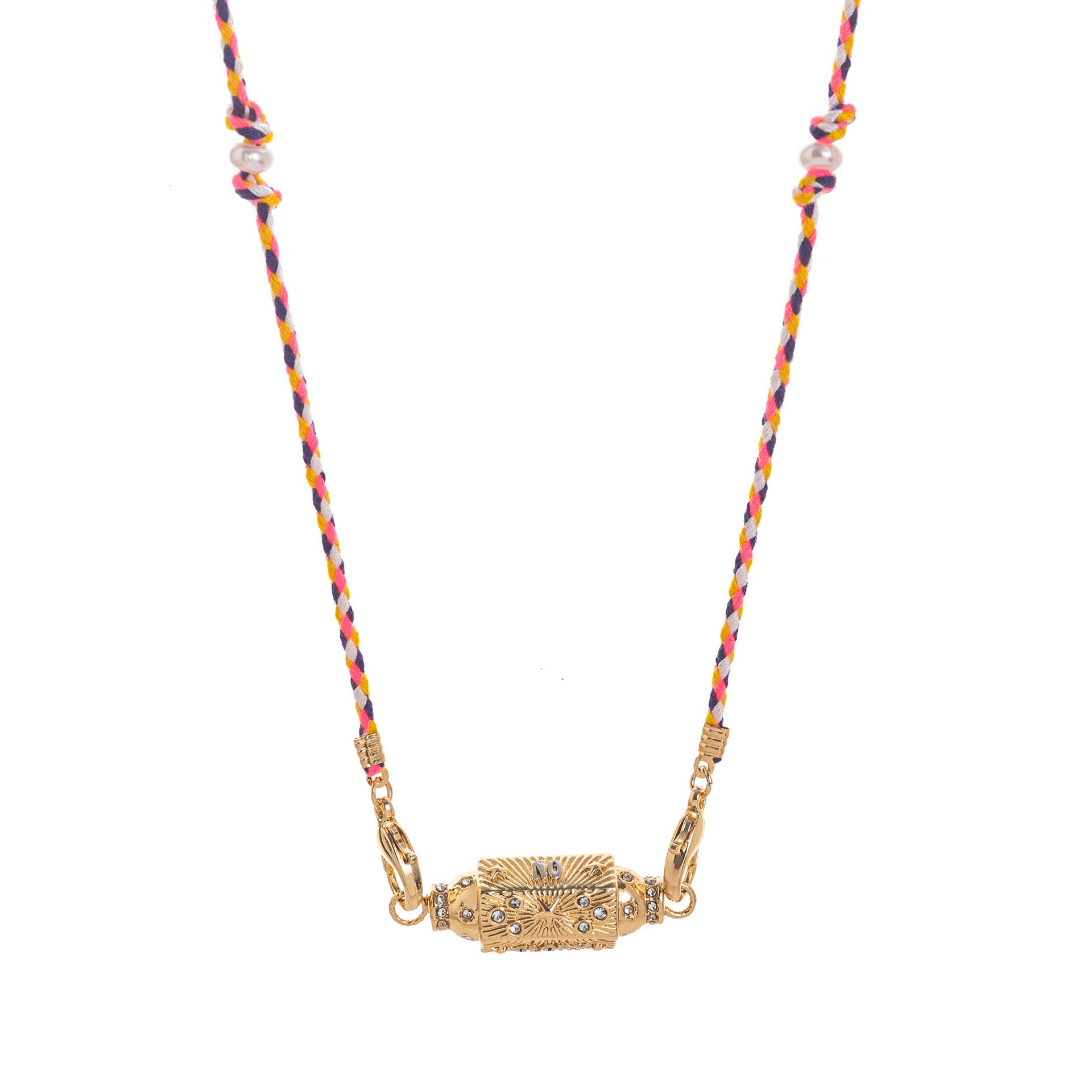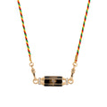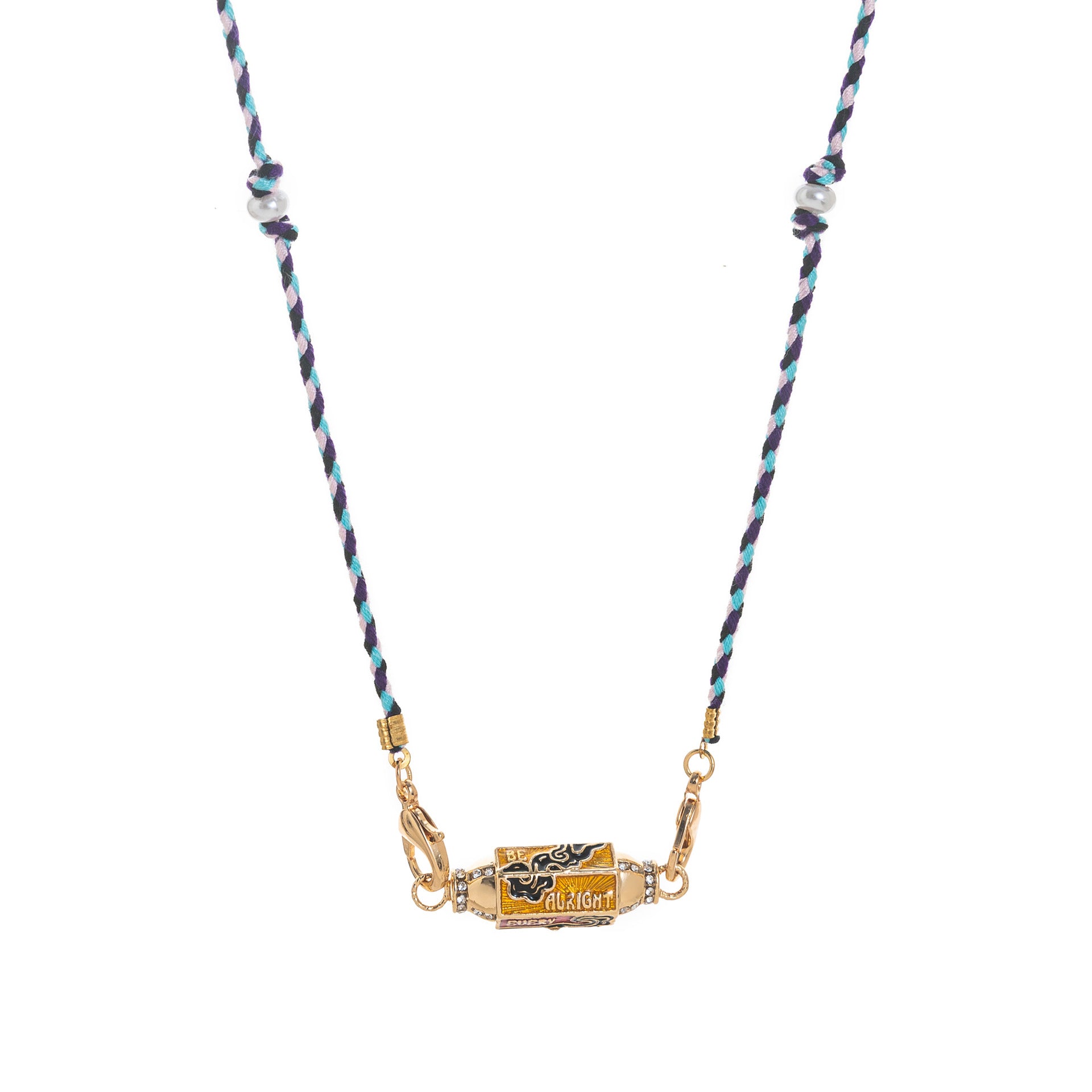 This necklace features a unique and creative design, seamlessly blending art and jewelry craftsmanship. Its colorful braided cord, embellished with delicate metal beads, creates a beautiful blend of vintage and modern aesthetics.