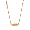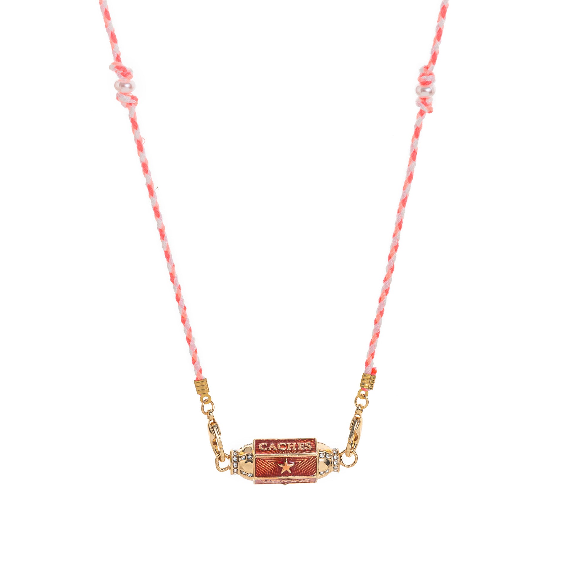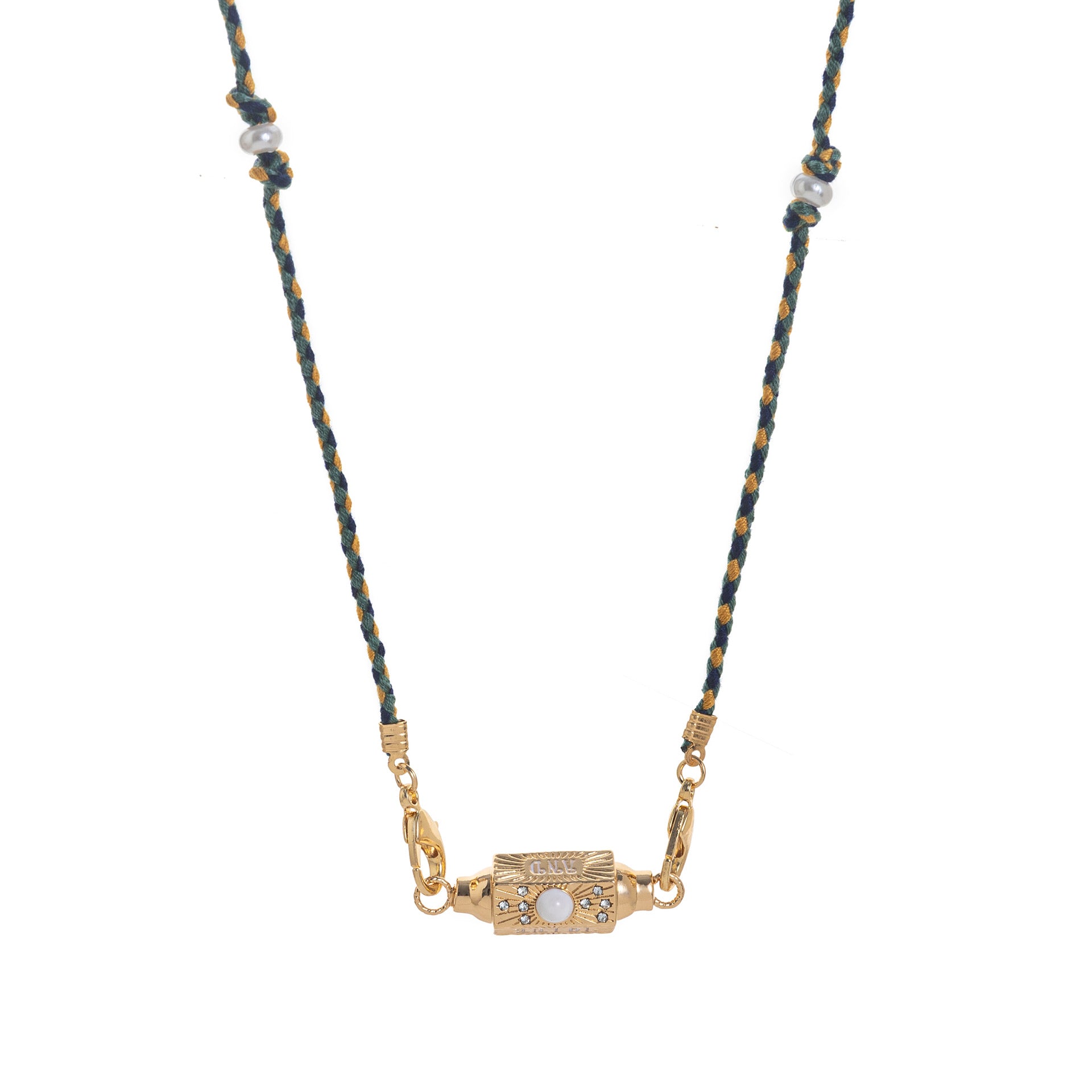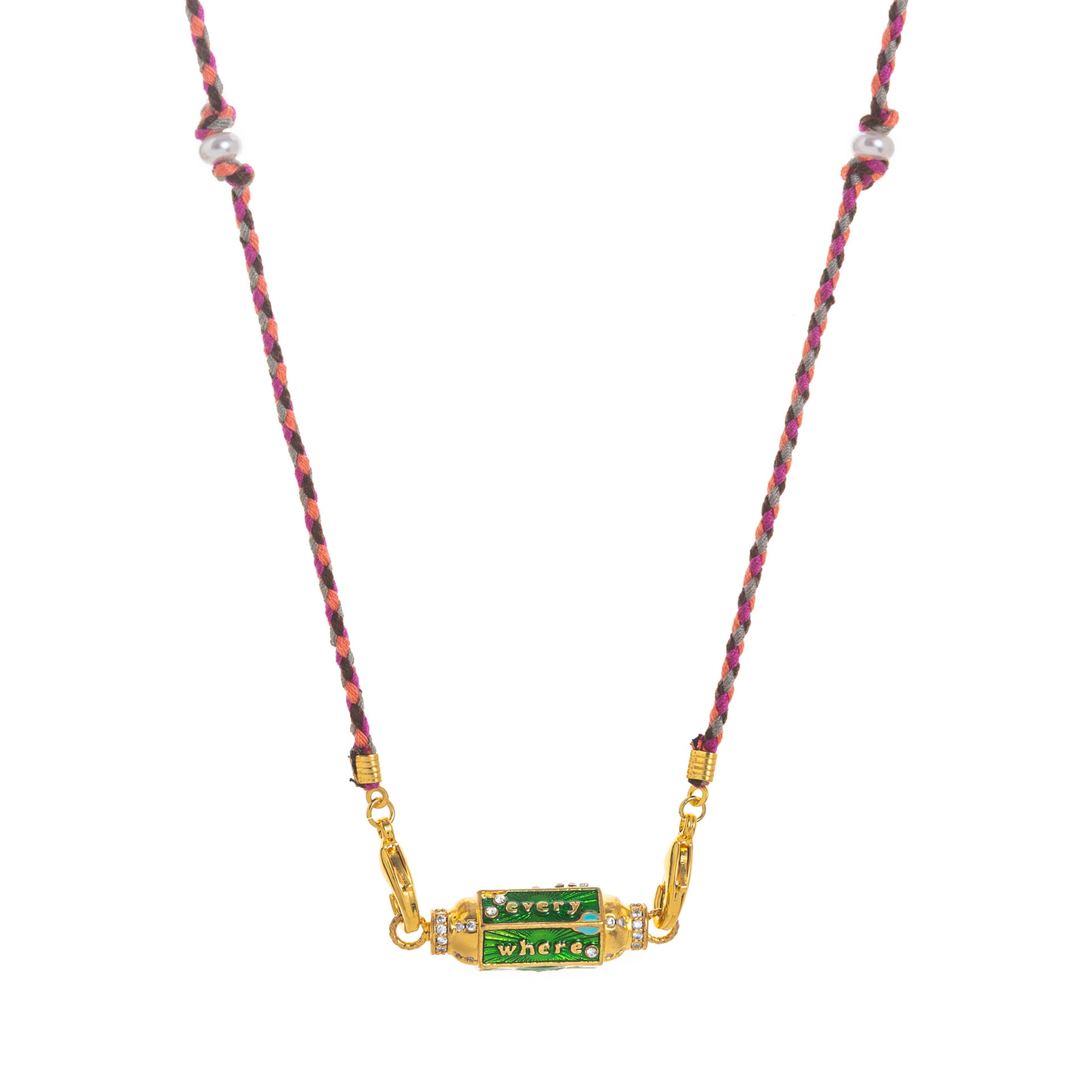 This necklace features a unique and creative design, seamlessly blending art and jewelry craftsmanship. Its colorful braided cord, embellished with delicate metal beads, creates a beautiful blend of vintage and modern aesthetics.